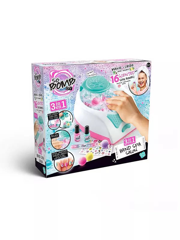 Contents: 1x So Bomb Hand Spa; 1x Bath Bomb Mould; 1x Scoop; 4x Powder Sachets; 4x Colour Sachets; 1x Nail File; 2x Nail Polish Colours; 1x Sticker Sheet