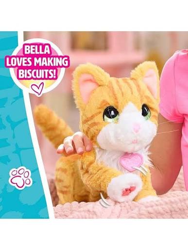 Lap Cat: Place Bella on a lap or blanket. Pet and hold the top of her head for 5-seconds to activate a lengthy, realistic kneading sequence, just like real cats do while making biscuits. Sweet meows, purrs, and cute sounds make play more fun.