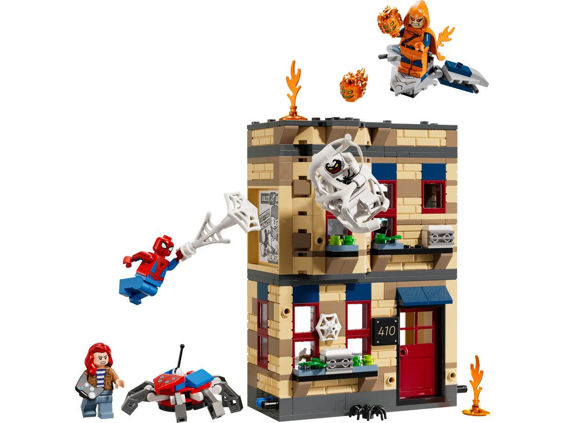 • LEGO® ǀ Marvel Spider-Man accessories – The 2-level apartment contains a kitchen, study and bedroom and features a giant, flexible, minifigure-trapping web attached to the outside of the building